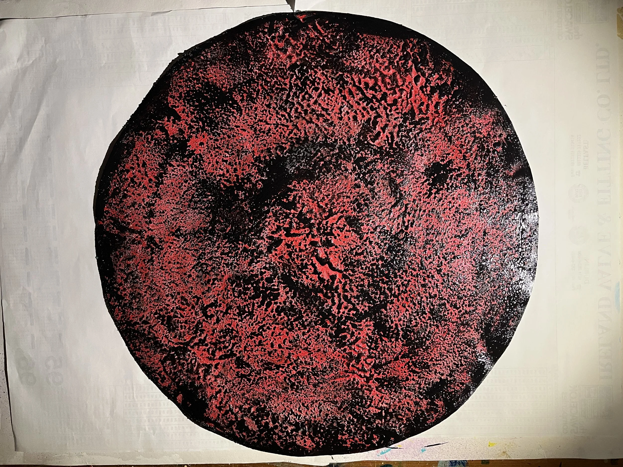 ‘Sandpainting Poster’ was born from a commission. The piece was created to fit in a music studio. The circular shape was inspired from the vinyl records.